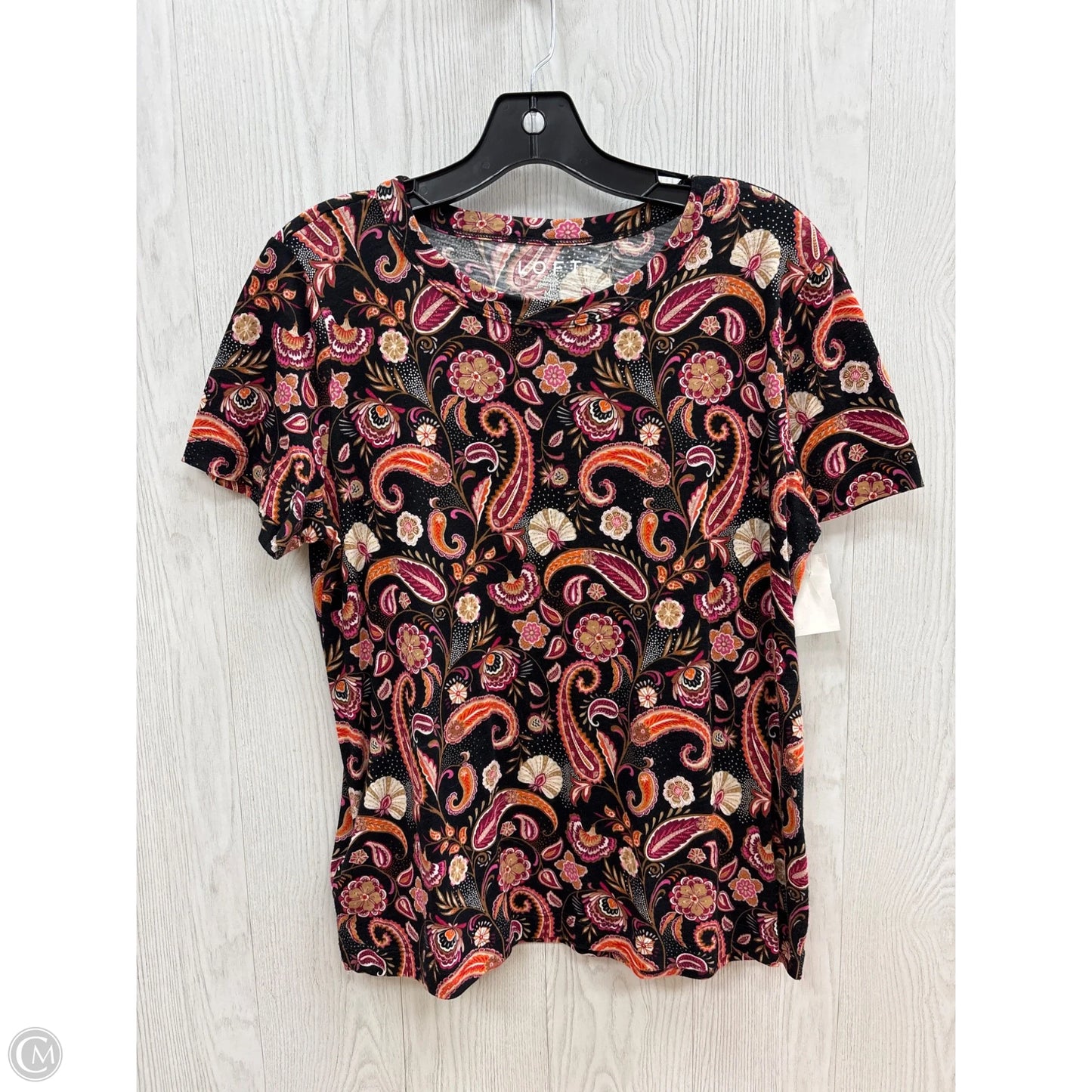 Top Short Sleeve Basic By Loft In Black & Pink, Size: M